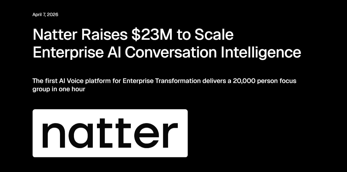 Natter, the AI-native conversation intelligence platform, has raised $23 million in Series A funding to accelerate its mission of capturing real-time human voices at scale. The round was led by Renegade Partners, with significant participation from Kindred Capital, Costanoa Ventures, and the founders of Indeed and Peakon. Following a year of explosive fivefold revenue growth, the company has officially relocated its global headquarters to New York City to support its expanding U.S. client base.